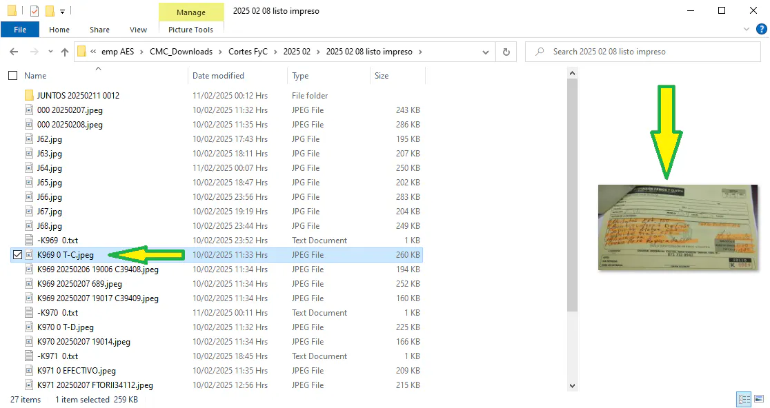 DIY: Yo lo implemente con carpetas en Windows, las tengo organizadas por día y folio de la Orden de compra ( O/S = Orden de servicio ). Cuando aplicamos una garantía por las piezas o servicios primero busco la factura y con eso me entero que Fecha y O/S, con esos datos busco en mi bitácora en carpetas de Windows y ya puedo ver la imagen de la O/S.