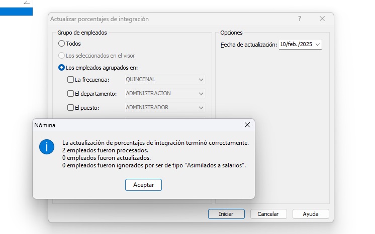 ya también actualice porcentajes de integración , por si ahi estuvieran vinculados