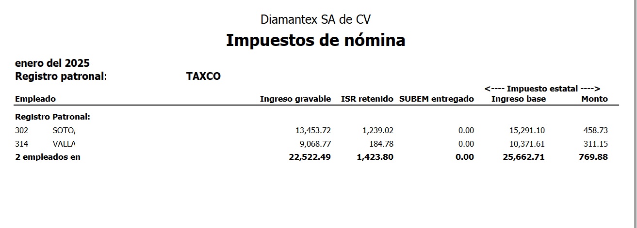 Buenas tardes, tengo una duda, ya tengo declarado en Nomina, preferencias de la empresa el impuesto de 3% de mi registro patronal ( TAXCO )