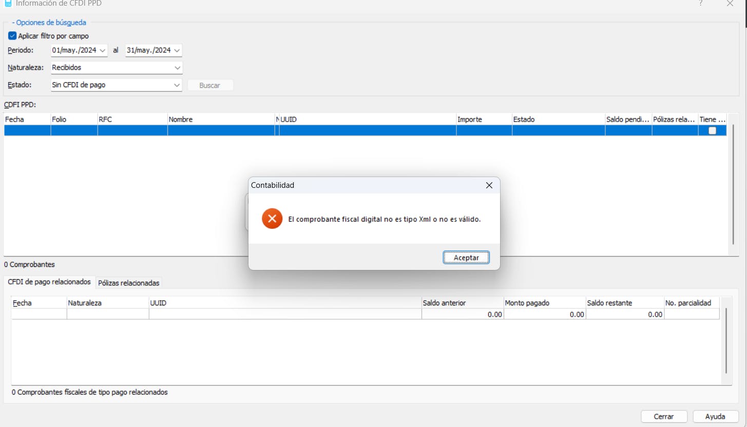 al utilizar la herramienta INFORMACION DE CFDI PPD me sale el siguiente error,