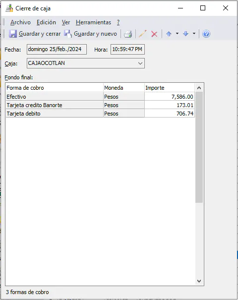 Ahora les comparto una captura de pantalla de las formas de cobro realizadas en ese cierre de caja, para que vean que son más de una: