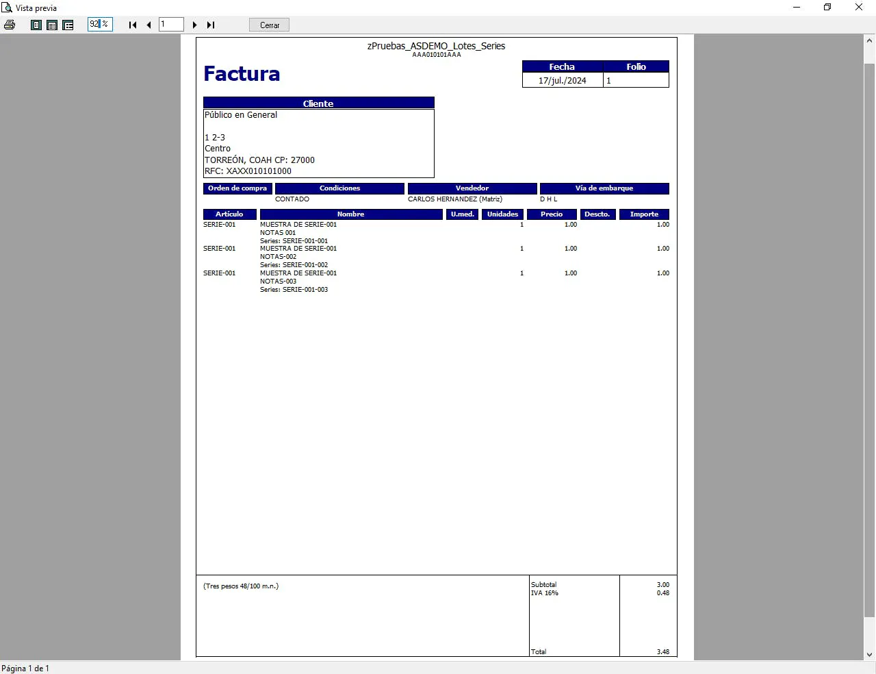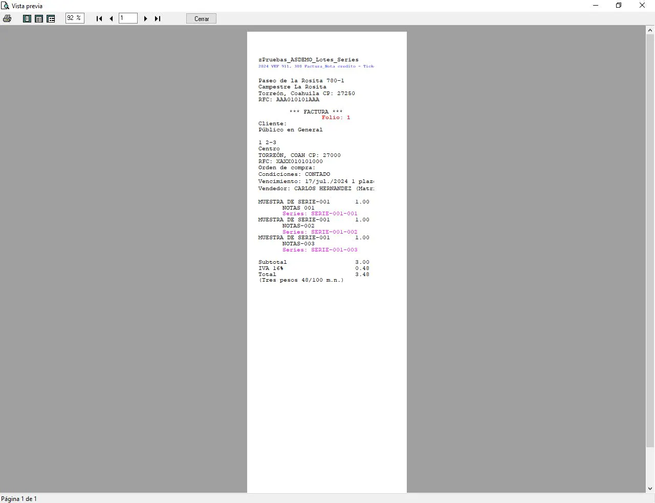 Vista previa de la factura