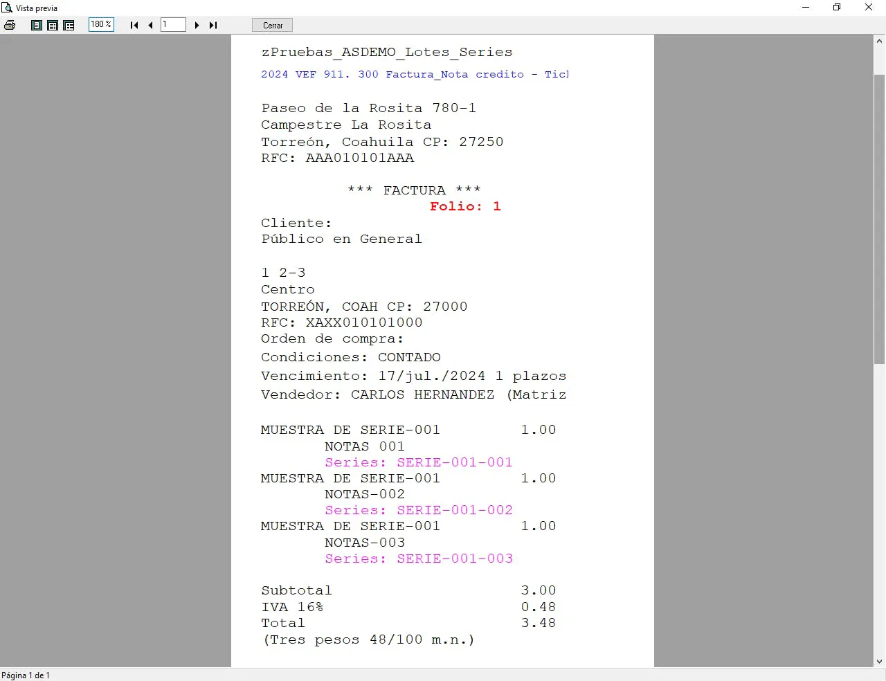 Vista previa de la factura-Ticket